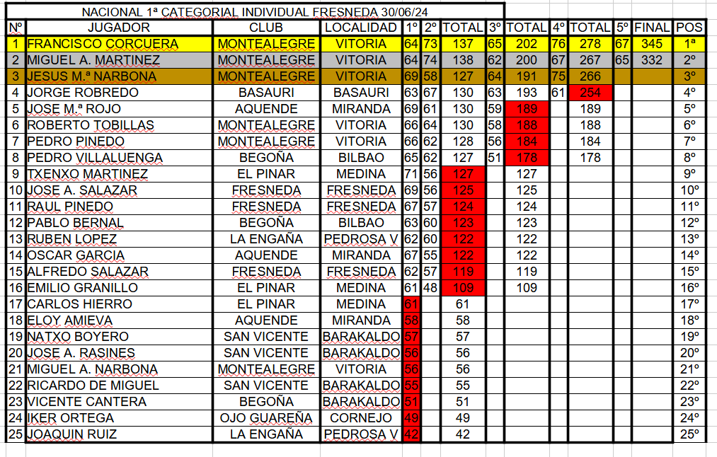CLASIFICACIÓN DE LA FINAL DISPUTADA EN CUEVA DE JUARROS